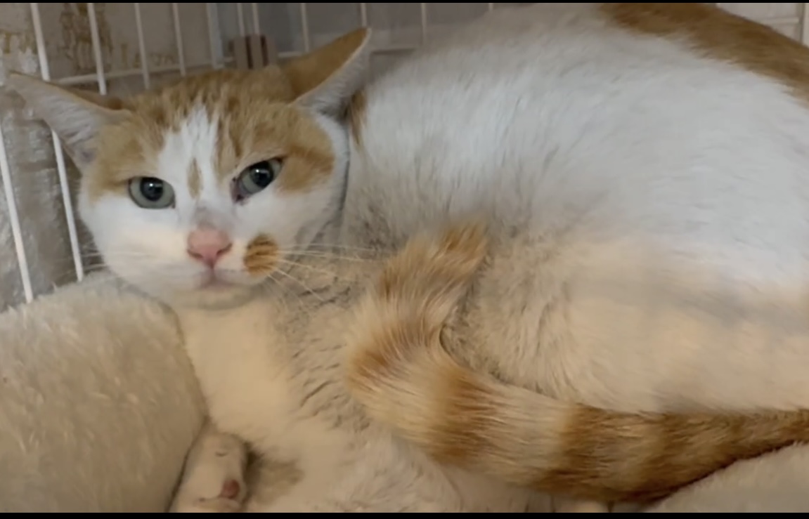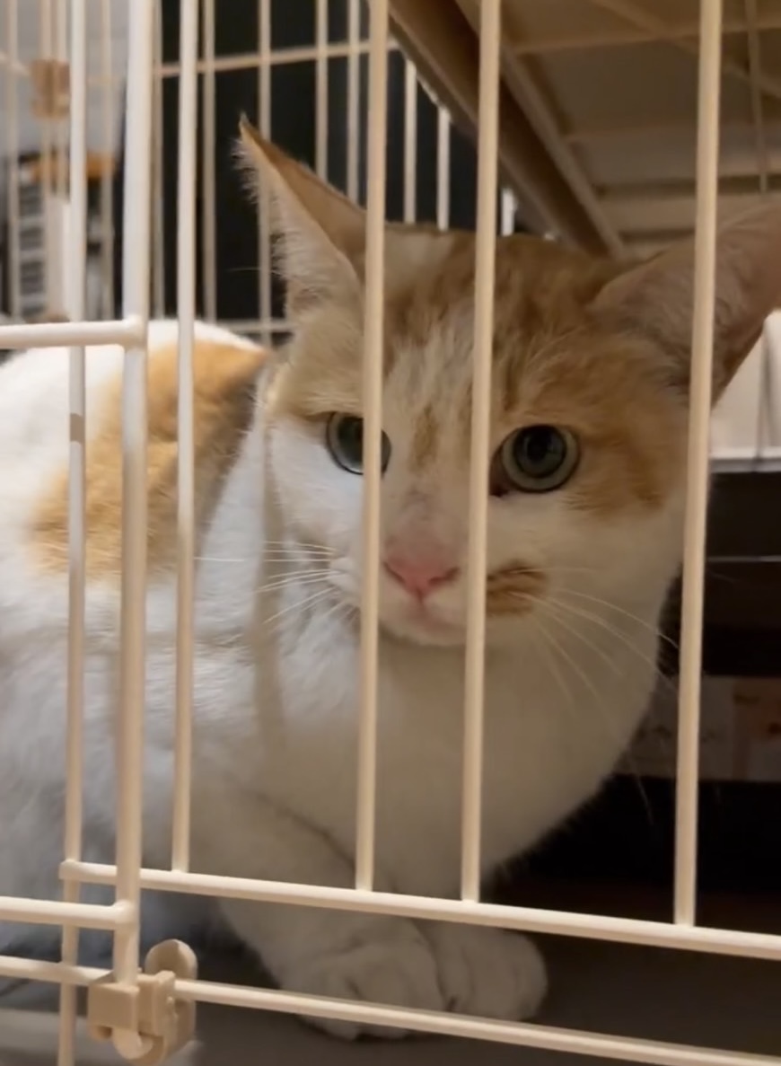 ヤードで保護した茶白の猫ちゃんです。鳴き声が可愛いです。 保護して間もないのでまだ人慣れ訓練中です。